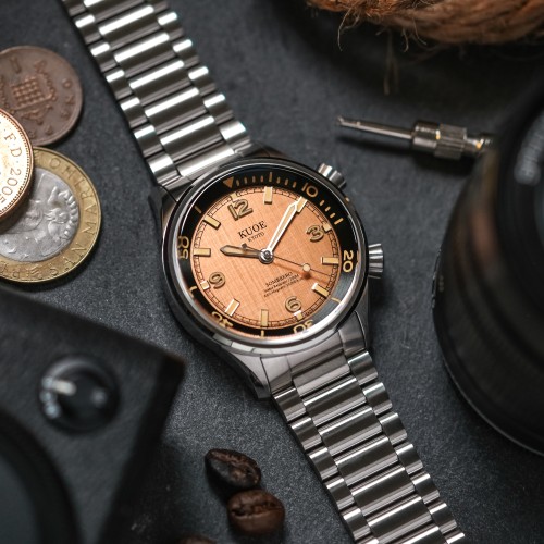 This watch is water resistant up to 20 BAR, has scratch and damage resistant sapphire crystal, and even comes with a magnetic resistant case, making it KUOE's most definitive tool watch to date.