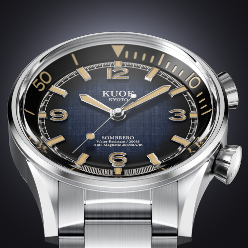 Taking its name from the Sombrero Galaxy, which is said to be the most beautiful place in space, the SOMBRERO 90-011 is KUOE's first diver style design to date.