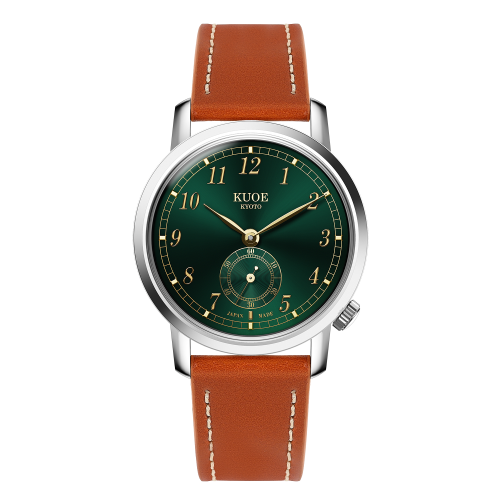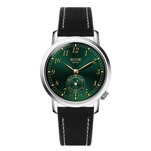 The OLD SMITH 90-007 has thermally blued elegant leaf hands. Bluing is an old technique used to make steel more corrosion resistant but has fallen out of favor in recent years due to the low cost of stainless steel. In modern times, this technique is often emulated with paint, but KUOE has decided to use true blueing for this model. This model also has "curved hands", in which the tip of the minute hand curves along the glass, which was common in watches made several decades ago. This hand design is easily readable while at the same time maintaining a sense of luxury.