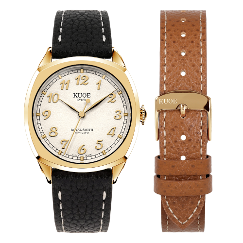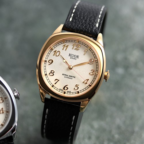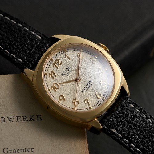 Designed from the scratch with thoroughly selected parts. Inspired by antique watches from the 1940's, this model uses a cushion case that was common in those days. The classic Breguet numerals on the dial are individually hand-applied, and we give textures to the surface of the dial.The watch glass and caseback are equipped with domed sapphire crystals with AR coating. Each watch is individually assembled by KUOE's own watchmakers in our workshop in KUOE KYOTO and delivered to you with great care.