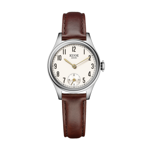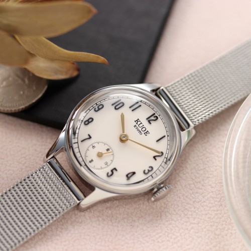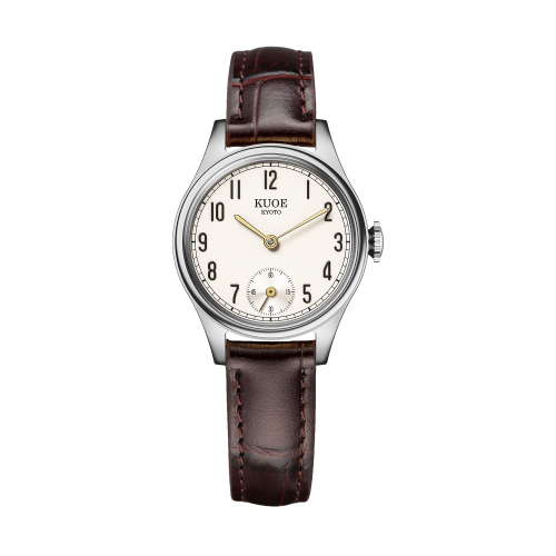 A feminine, smaller 26 mm body filled with antique designs combines the nostalgia of a classic vintage style watch with a modern feel. The small second hand at six o’clock, rare in women’s models, gives it a unique charm. It is also recommended as a couple watch with Old Smith 90-001.