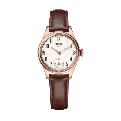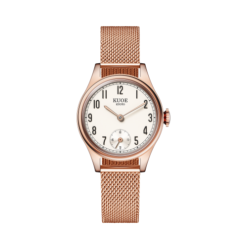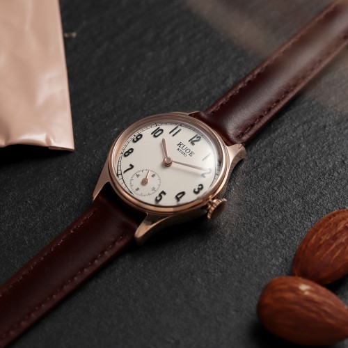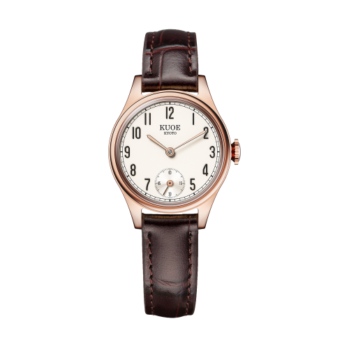 A feminine, smaller 26 mm body filled with antique designs combines the nostalgia of a classic vintage style watch with a modern feel. The small second hand at six o’clock, rare in women’s models, gives it a unique charm. It is also recommended as a couple watch with Old Smith 90-001.